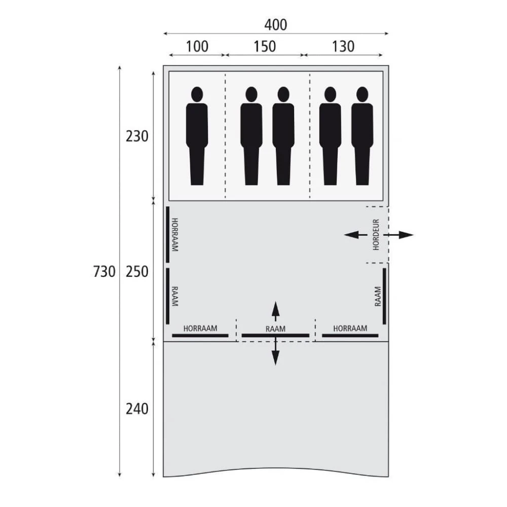 - Volledig horrengaasdeur en achterzijde binnentent