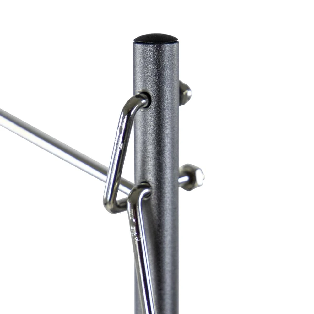 Vaak is het fijn om op de camping een lampje boven de tafel te hebben schijnen om heerlijk een boek te kunnen lezen, te puzzelen of gezellig een spelletje te spelen met z’n allen. In de voortent is dit vaak geen probleem, maar het wordt wat lastiger als je bijvoorbeeld met alleen de tent op reis bent. Bo–Camp heeft daarvoor een Lampstandaard die eenvoudig te bevestigingen is op je tafel door middel van een klem. Aan de standaard zitten twee Haken waaraan je je lamp kunt ophangen, perfect voor de late uurtjes.