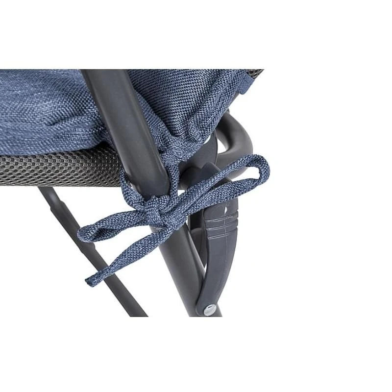Dit kussen van Bo-camp blijft altijd netjes op zijn plaats zitten door de meerdere bevestigingspunten. Voorzien van een omgestikte rand bovenin en halverwege en onderaan koortjes om de hoes mee vast te maken aan je campingstoel kan dit kussen geen kant op. Je kan hem dus gemakkelijk in je stoel laten zitten, ook als je hem inklapt of opbergt.