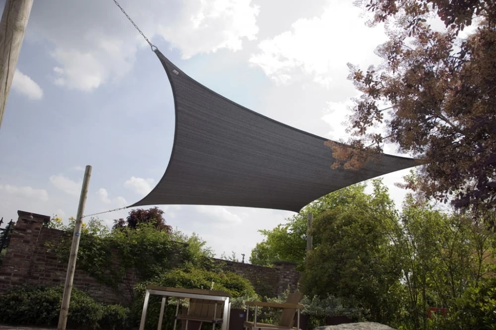 Let er wel op dat je dit schaduwdoek niet te strak afspant in verband met de wind.
