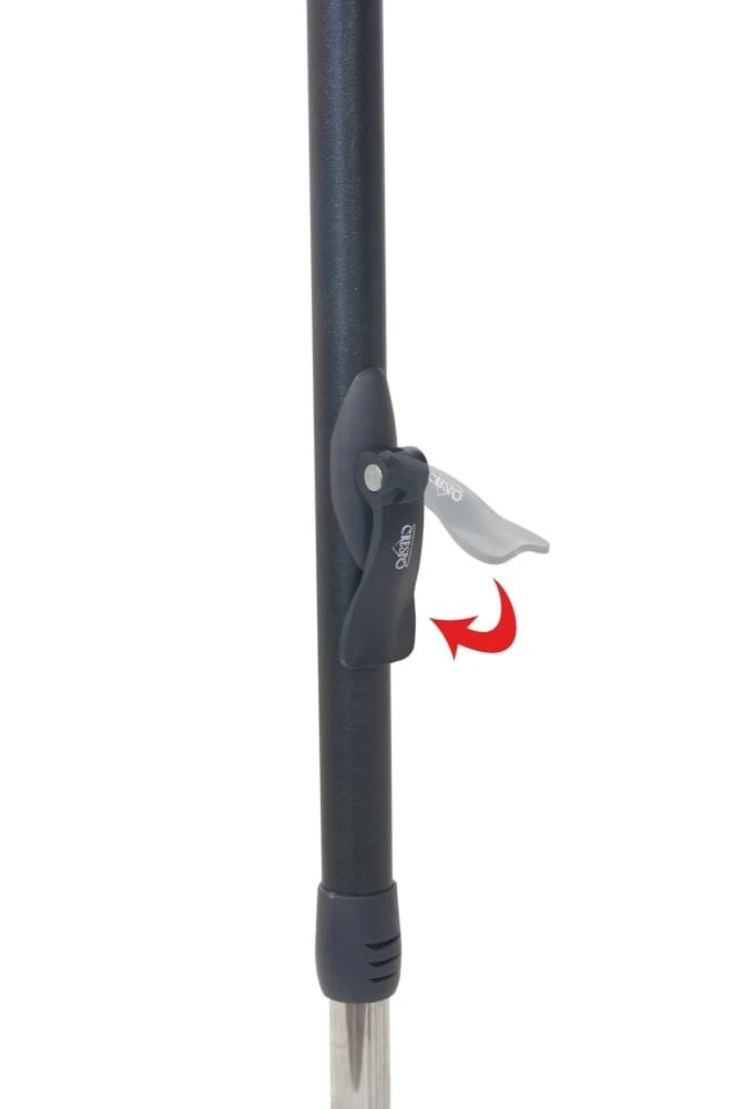 Het klepje waarmee je de stelpoot vastzet kan ronddraaien. Zitten de poten te los dan is het een kwestie van de klepjes ronddraaien totdat ze wat vaster zitten. Begin met een halve draai, vaak is dat al voldoende. Het klepje moet vast genoeg zitten zodat de stelpoot vast zit maar het klepje nog in te klappen is.
