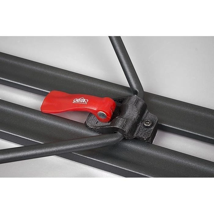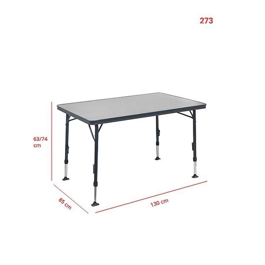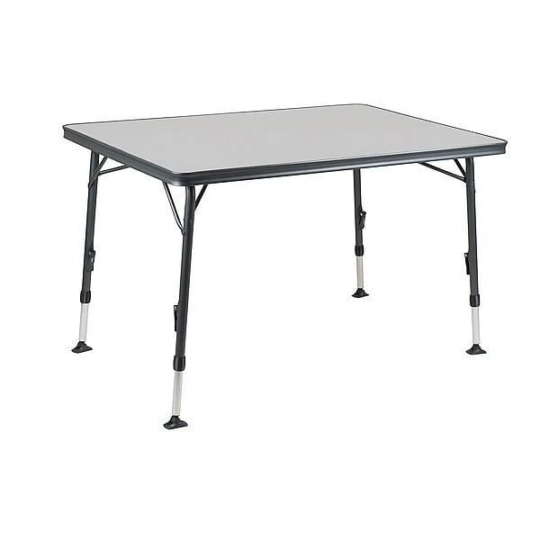 De dikke, extra stevige buizen van het frame zorgen voor een stabiele tafel. Ook is het blad aan de onderkant voorzien van een dwarsbalk zodat het blad niet door kan gaan zakken ondanks het formaat van de tafel. Tevens is deze kampeertafel voorzien van kantelbare onderpootjes zodat hij stevig staat en zich aanpast aan de ondergrond.