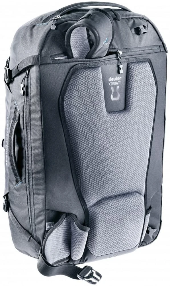 Verder is deze Deuter rugtas voorzien van NFC. Houd een mobiel met NFC tegen de telefoon aan en je kan zien of de tas echt van Deuter is en je kunt hem registreren voor wanneer je hem kwijt raakt waardoor je hem eenvoudig kan terug vinden. De schouderbanden van deze tas zijn los te klikken en op te bergen in het rugvak. Hierdoor kun je de tas dragen aan één van de twee draaghengsels aan de boven- en zijkant en creëer je een soort laptoptas. Ook de heupbanden waarover deze tas beschikt zijn weg te vouwen zodat deze niet los langen wanneer je hem aan de hand draagt.