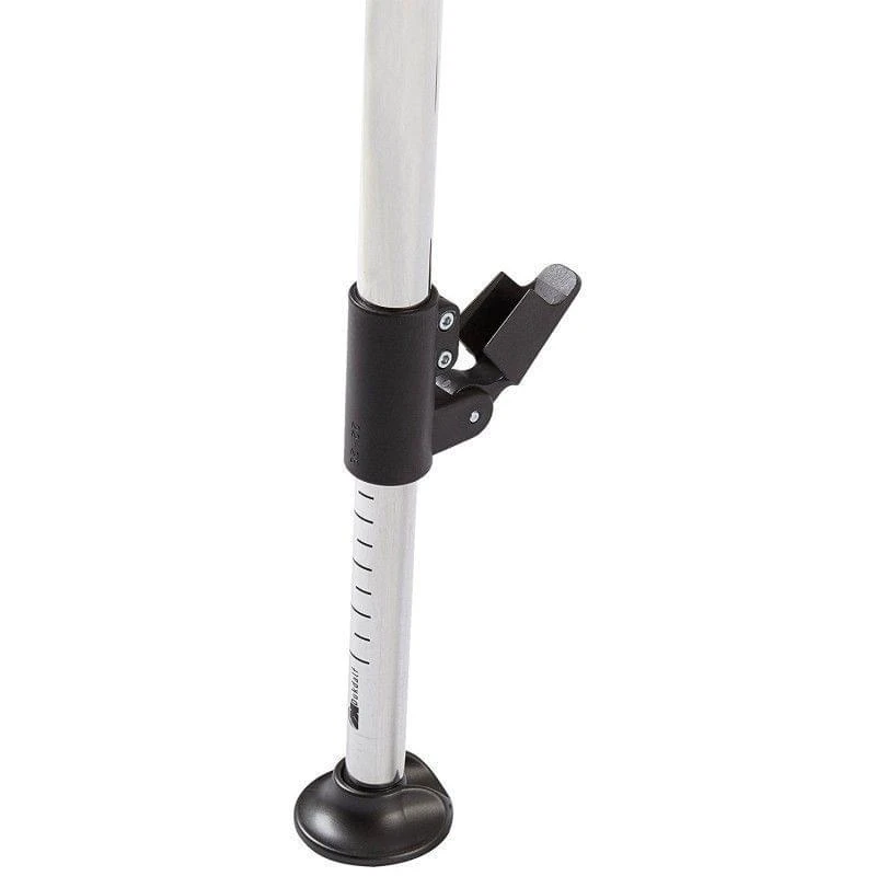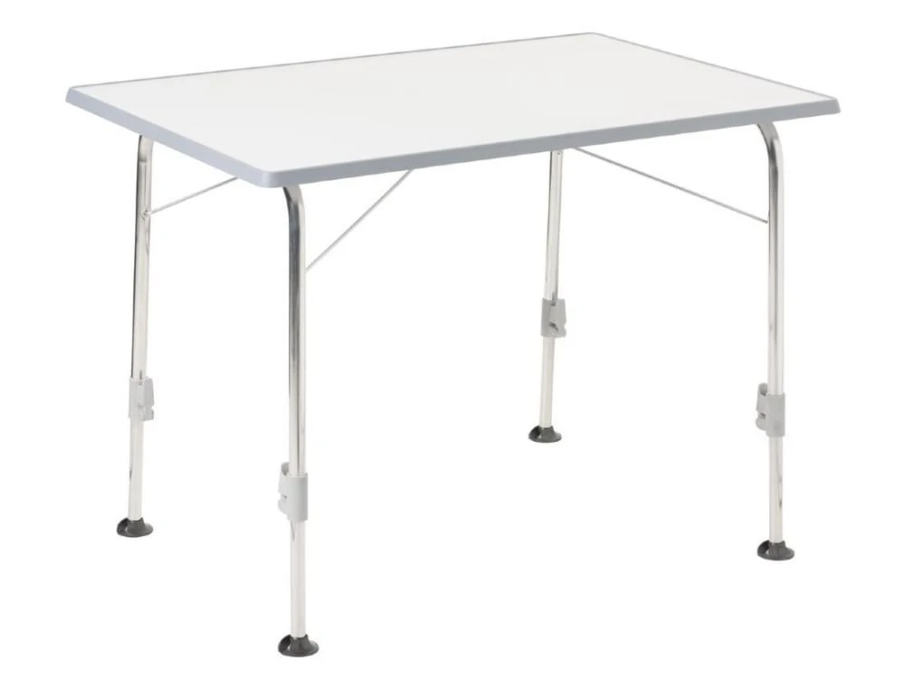De poten zijn makkelijk vast en los te maken door middel van een kunststof clip aan de zijkant van de poot. Onder de poot zit nog een extra voetje wat ervoor zorgt dat de campingtafel nog steviger staat en niet weg kan zakken in zachte grond. Zo heb je altijd een stabiele tafel.