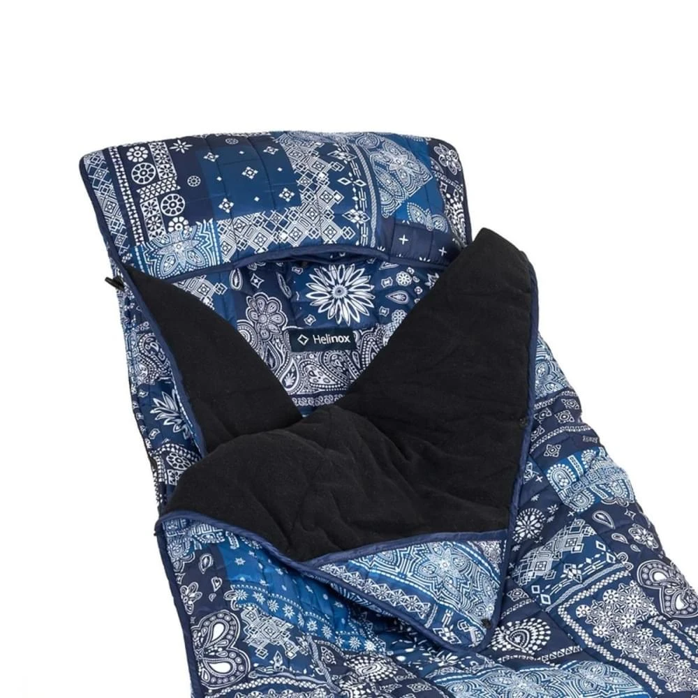 Helinox heeft een accessoire voor je Sunset en Beach Chair; de Toasty. Een soort deken voor in je stoel met een geïntegreerde capuchon. Hij bestaat uit 2 zijdelingse delen die je om je lijf kunt wikkelen en zo voor het Cozy comfort van Helinox zorgt. Zo heb je het behaaglijk warm als je bij het kampvuur in je stoel zit en naar de sterren kijkt. Je bergt de Toasty op in de pakzak. Als de Toasty in de pakzak zit kan je hem ook als hoofdkussen gebruiken.