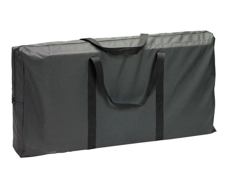 Je neemt de keuken gemakkelijk mee en als hij ingeklapt is neemt hij door zijn platte vorm nauwelijks ruimte in. En voor het vervoer zit er een praktische opbergtas bij. gewicht 18 kilo