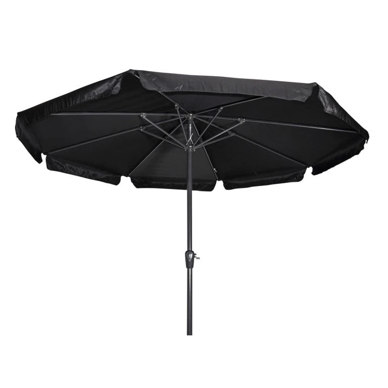 De Libra parasol van Lesli Living heeft 8 metalen baleinen, een veersysteem en een sterk antraciet kleurig aluminium frame. Hierdoor is de parasol eenvoudig op te zetten.