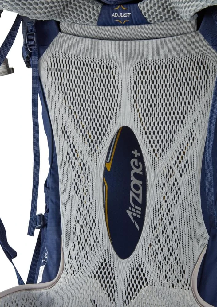 Om het comfort van AirZone Trek verder te verhogen kun je de gehele tas verstellen en aanpassen op jouw lichaamsbouw en pakvolume. De ruglengte, heupband en schouderbanden kunnen versteld worden, evenals de diverse compressiebanden die de rugzak mooi stevig ingepakt houden. Naast het ademende rugpand zijn ook de heupband en schouderbanden voorzien van een goed ademende laag mesh die comfortabel draagt.