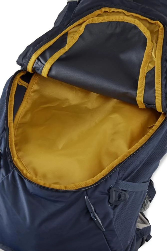 De rugzak heeft een groot hoofdvak, diverse stretch zij- en voorvakken, een ondervak waarin de regenhoes zich bevind en een bovenvak wat uitgebreid kan worden en het pakvolume kan vergroten van 35 liter tot 45 liter. Ook is de heupband voorzien van twee zakken met rits, zodat je hierin snel wat praktische spulletjes kwijt kunt.