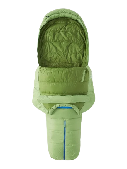 De mummyslaapzak heeft twee handige zijritsen die tot de helft opengaat, waardoor je er makkelijk inkruipt. Je kunt de voetbox opritsen voor meer ruimte bij je voeten en zorgt voor meer warmte als je hem weer dicht ritst. Binnenin zit een handig opbergcompartiment. Met een gewicht net boven de kilo is hij perfect voor al je trips.
