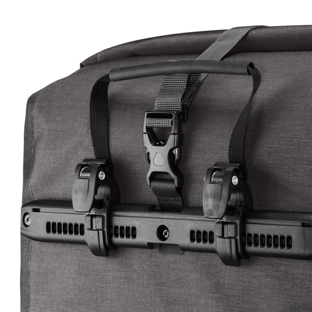 De meegeleverde schouderriem laat je de tas ook op de voet makkelijk te dragen. Met het Quick-Lock 2.1 draagsysteem instaleer je de tas gemakkelijk en snel op je bagagedrager.