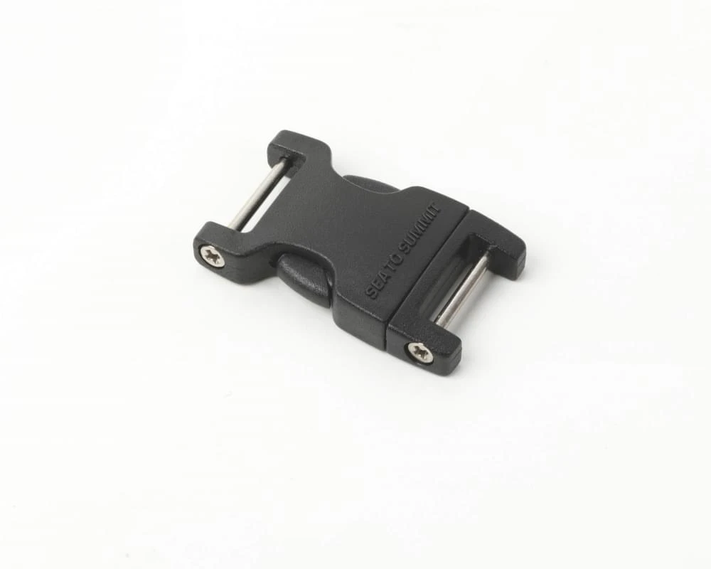 Er is een unieke buckle aangebracht op de Sea to Summit drybag en mocht deze kapot gaan, dan is hij te vervangen door een van de pinnen eruit te halen en een nieuwe buckle te plaatsen.