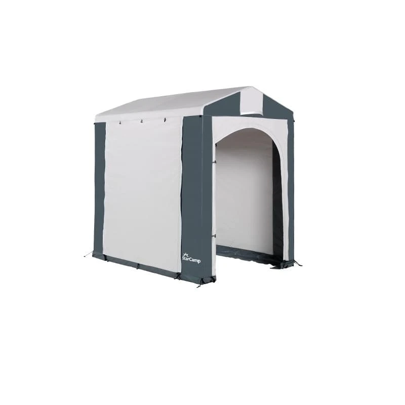 De Starcamp Iseo Grey-Line keukentent is een extra hoge vrijstaande tent. Handig voor naast de caravan om in te koken of om je spullen in op te bergen. De tent is voorzien van een groot ventilatierooster zodat vocht, afkomstig van het koken, de tent goed kan verlaten. Doordat de schuurtent wat hoger is kun je er makkelijk in staan, wel zo handig bij het koken.